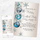 Belles invitations de fête de Noël et de cocktail de vacances avec flocons de neige et ornements bleu turquoise et argent. Ajoutez vos détails à l'avant et/ou à l'arrière en ajoutant simplement vos détails d'événement, style de police, taille et couleur de police, et libellé. Veuillez noter que tous les modèles d'invitation que vous trouverez sur Zazzle sont des graphiques imprimés sans véritables bijoux, rubans, reliefs, gaufrés ou pièces ajoutées.
