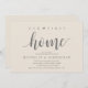 Our first home, new home housewarming party invitation card ("our first home") in cream grey theme, with cute little heart. Planning a housewarming party in celebrating your new home with your family and friends? Invite your guests with this beautiful and perfect Rustic calligraphy themed housewarming party invitation card.
