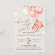 Invitations amis et famille dans le style et donner le ton pour votre journée spéciale avec cette charmante invitation d'anniversaire. Le design présente un ours en peluche avec des ballons roses sur un arrière - plan beige.