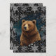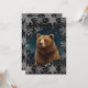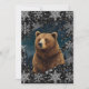 Décorez votre maison d'un petit feu de camp de vacances avec ces cartes de Noël à paysage enneigé pour cet ours brun rétro.