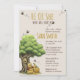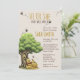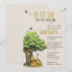 "Célébrez l'arrivée de votre petit bout de chou avec une invitation pleine de charme intemporel et de conte de fées. Cette invitation de baby shower fantaisiste présente un ours classique adoré, assis joyeusement sous un grand chêne avec un pot de miel sucré. Des abeilles à miel espiègles bourdonnent autour de l'annonce 'Il ou Elle', ce qui en fait le design parfait pour une fête de révélation du sexe magique.