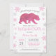 Invitation Ours polaire Hiver rose Fille Baby shower Flocon d