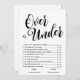 Over or Under Simple Bridal Game - voici l'un des jeux de douche nuptiale communs pour faire passer un bon moment à vos invités. Comme il est préparé en tant que modèle, vous pouvez le personnaliser selon vos souhaits/besoins. POUR PLUS DE JEUX AVEC LE MÊME DESIGN écrire G317 dans la boîte de recherche de ma boutique. Merci de visiter ma boutique.
