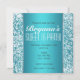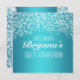 Invitation Pailletée Fête Bleue Aqua. Personnalisez le recto et le verso pour n'importe quel événement.