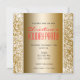 Invitation pailletée pour fête de vacances dorée. Personnalisez le recto et le verso pour n'importe quel événement.