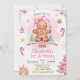 Jolie invitation d'anniversaire en pain d'épices rose pour les filles, mignonne invitation d'hiver en pain d'épices.
