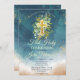 Aquarelle peinture éclaboussée de croix florale Première Sainte Communion Invitation.