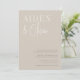 Une belle typographie moderne basée sur la faire-part de mariage dans les tons de pierre de terre. Vos noms apparaissent en haut à gauche dans une paire alléchante de scripts manuscrits et de polices serif classiques. Entrez vos noms, puis utilisez l'outil de conception pour ajuster la taille et le positionnement si nécessaire. Personnalisez avec vos détails de mariage dans les lettres serif classiques alignées en bas à droite.