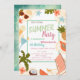 These invitations feature palm leaves with tropical flowers, pineapple and watermelon and a green background. This invitation is easily customized for your event by simply adding your details.