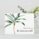 Ce palmier destination mariage bridesmaid proposition d'invitation design dispose de palmiers tropicaux aquarelles sur un arrière - plan blanc éclatant qui évoque l'ambiance rêvée d'un mariage de destination. ce design rayonne l'amour des rivages de sable et des palmiers balançants, parfait pour les couples à la recherche d'une célébration vraiment inoubliable. Pour une coordination personnalisée ou toute question, n'hésitez pas à communiquer avec nous.