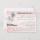 Cartes de réception de mariage sur la plage de style billet rose avec les directions incluses. Veuillez utiliser le bouton personnaliser pour obtenir plus d'options.