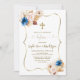 Aquarelle bleu rose Fleurs, Pampas Grass, Palm Feuille cadre doré design baptism. Fleurs roses délicates à l'aquarelle et gazon de pampas, feuilles de palmiers sur un arrière - plan blanc. Utilisez l'outil Personnaliser pour ajouter vos informations. Pour les articles correspondants, veuillez visiter ma collection d'événements religieux.