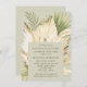 Boho desert bouquet après-mariage dîner invitation avec palmiers aquarelles peints à la main, pampas herbe, orchidées blanches et feuilles séchés dans les tons terre naturelle sur arrière - plan vert sauge. Customisez facilement les couleurs de l'arrière - plan et du premier plan, le style de police, la mise en page et ajoutez votre photo de mariage préférée au dos. Coordonner les invitations et les accessoires disponibles en magasin.
