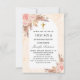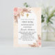 Un cadre d'arc et papier marbré couleur pêche en arrière - plan. Décoré de fleurs roses d'or et de rose, de roses et d'herbe de pampas. Personnalisez et ajoutez un nom et des détails.