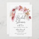 Célébrez la future mariée avec cette invitation à la douche à nuptiale fleurie boho rose moderne. Conçu avec de l'herbe de pampa couleur douce, des fleurs roses rousses et d'élégants accents bohèmes, ce modèle chic est parfait pour des fêtes de douches nuptiales rustiques, de jardin ou de plage.
