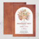 Feuilles tropicaux de palmiers séchés, pampas herbe et protéa fleurs en terre cuite invitation à la fête de fiançailles. Ce magnifique design mariage dispose d'un cadre en arc sur arrière - plan taché en terre cuite. Dans le cadre il y a un bouquet d'aquarelle de feuilles de palmiers séchés, des fleurs de protéa et de l'herbe de pampas.