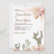 Éblouissez vos invités avec cet invitation de mariage élégant avec de belles fleurs roses et des cactus avec typographie moderne. Ajoutez simplement les détails de votre événement sur ce modèle facile à utiliser et ornez cette carte avec votre photo préférée pour en faire une invitation unique.