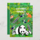 Belle forêt de bambou vert luxuriant avec pandas noirs et blancs, pandas rouges et faisans colorés de Lady Amherst. Design coloré avec texte personnalisable.