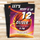 Invitation d'anniversaire pour les sports, panier de basketball. Ce design moderne comporte le texte "C'est parti pour un match" et un ballon de basketball sur un fond vif et vibrant. Le thème du basketball en fait un choix parfait pour l'anniversaire d'un fan de basketball. Ajoutez vos informations.