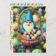 Charmant panier d'oeufs de Gnome Invitation de Brunch de Pâques. Un joyeux gnome en tenue bleue, surplombant un panier d'oeufs colorés de Pâques. Personnalisez ce modèle avec du texte à l'avant et à l'arrière de la carte. Faites-le pour le petit-déjeuner ou le dîner. Modifiez-le pour apporter d'autres modifications.