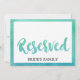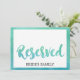 Ce panneau de mariage de plage de calligraphie à l'aquarelle "réservé" est parfait pour un thème de mariage de destination tropicale. Le design amusant et énergique présente une jolie police de caractères à l'aquarelle dégradée vert sarcelle et bleu aqua. Utilisez ces cartes pour réserver des chaises ou des tables à votre cérémonie de mariage ou réception. Conçu avec soin par Miriam chez Fresh & Yummy Paperie. Pour les articles de coordination, veuillez visiter ma boutique Zazzle :