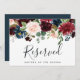 Indiquez les places réservées à votre mariage avec ce panneau floral chic aux tons de bijoux. Personnalisez avec deux lignes de texte personnalisé en écriture calligraphiée et en lettres majuscules modernes (représentées avec "Réservé" et le nom de l'invité avec une place réservée), encadré de fleurs aquarelles luxuriantes et de feuillage vert dans des tons automnaux riches/