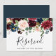 Indiquez les places réservées à votre mariage avec ce panneau floral chic aux tons de bijoux. Personnalisez avec deux lignes de texte personnalisé en écriture calligraphique et en lettres majuscules modernes (représentées par "Réservé" et le nom de l'invité avec une place réservée), encadrées de fleurs aquarelles luxuriantes et de feuillage vert dans des tons automnaux riches/