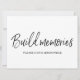 Un panneau "Construire des souvenirs" à la main élégant NOTE ____________________________________________________________________________________________________________________ Il s'agit d'un panneau de 6,5 po x 8,75 po, en cliquant sur le bouton "customiser", vous pouvez accéder aux outils de conception pour modifier la taille et la forme, ainsi que pour ajouter une couleur arrière - plan. Pour faire correspondre ce panneau à votre style mariage, vous pouvez choisir entre 12 options papier uniques. Pour une sensation rustique, utilisez le kraft artisanal, pour ajouter un peu de glam utilisez le shimmer perle. _________________________________________________________________________________________________________________________