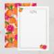 Ces cartes de papeterie monogramme comportent un motif de pamplemousse peint.