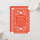 Ce Faire-part de mariage mexicain de Papel Picado Orange White Folk Art présente un cadre orange symétrique, décoratif et inspiré de picado traditionnel en papel ou de motifs découpés en dentelle, souvent vus dans des décors festifs ou folkloriques. Des motifs découpés en blanc et complexes de coeurs, de fleurs et de tourbillons embellissent la frontière, créant une atmosphère élégante et romantique. Les bords des pétoncles sont ornés de formes répétées, pétales et pointillées, ce qui en fait un lieu idéal pour les invitations, les cartes de voeux ou les annonces festives au charme artisanal.