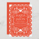 Invitation Papier mexicain Picado Orange Blanc Mariage d'art