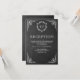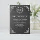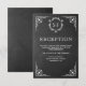 Carte de réception élégante avec une bordure blanche ornée élégante et un monogramme magnifique sur un fond de tableau noir.
