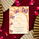 L'invitation d'anniversaire rétro présente des papillons colorés avec un cadre d'arc sur un arrière - plan de pêche à vague super. Personnalisez les invitations de fête d'anniversaire en ajoutant votre nom, votre âge et les détails de votre fête.