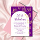 Honore une femme ou une fille spéciale avec cette invitation élégante et féminine à la fête d'anniversaire. Cet élégant design présente un cadre en arc blanc sur fond de violet. Le cadre est décoré avec de très jolis papillons d'or clip art. Chaque texte est personnalisable pour vos besoins.