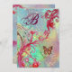 Fleurs et floraisons printanières fantaisistes et lumineuses rouge fuchsia dans des tons de bleu-vert et de sarcelle. Design unique et peinture avec feuille d'or et d'argent.