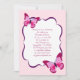 Cette carte d'invitation facilement customisée est agrémentée de jolies papillons graphiques roses et violets dans un motif d'un côté et d'un texte flanqué dans une forme de filigrane de l'autre, parfait pour une fête d'anniversaire de fille.