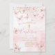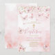 Papillon rose ÉDITABLE Floral Girl Christening Baptism Invitation Élégante Parties scintillant or Croix Rose Aquarelle Baptême Invitation