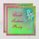Bright rose, vert citron, violet et bleu turquoise néon grunge papillon et fleurs sweet sixteen invitation fête d'anniversaire.