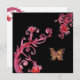 Papillons dorés fantaisistes, fioritures de fuchsia rouge vibrant, fleurs et floraisons au printemps. Peinture aquarelle originale avec feuille d'or et d'argent par Bulgan Lumini (c). Facile à personnaliser avec vos initiales et votre propre texte en tant que faire-part de mariage, carte de table, carte de remerciement pour enterrements de vie de jeune fille, anniversaires sweet 16, fêtes, remise de diplôme, fêtes de fiançailles, anniversaire de mariage ou tout autre événement que vous souhaitez !