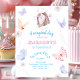 Unicorne aquarelle et papillons sur arrière - plan rayé. Ces invitations d'anniversaire sont facilement customisées pour votre événement en ajoutant simplement vos détails.