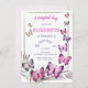 Papillons aquarelle sur arrière - plan rayé. Ces invitations d'anniversaire sont facilement customisées pour votre événement en ajoutant simplement vos détails.