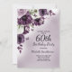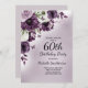 Elégante et fantaisiste 60ème anniversaire invitation pour les femmes avec de jolies fleurs et papillons d'aquarelle violet et blanc.