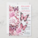 Invitation Papillons et Fleurs dans des tons roses variés