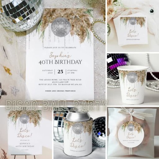 Célébrez n'importe quel âge dans le style avec notre 'Pampas Grass Disco Ball' Any Age Boho Invitation Anniversaire. Ce design unique allie harmonieusement le charme naturel de l'herbe de pampas à l'élégance moderne d'une boule de disco, créant une invitation polyvalente et élégante pour toute célébration d'anniversaire. Entièrement personnalisable pour une touche personnelle, cette invitation ouvre la voie à un événement mémorable et sophistiqué. Commandez maintenant et laissez le thème boho pampas grass et disco ball faire de votre anniversaire une fête vraiment spéciale!