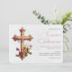Invitation Pâques Croix Élégante avec Fleurs Roses