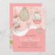 Jolie invitation au brunch de Pâques de printemps en rose pastel, blanc et marron clair. Thème de Pâques avec coeurs suspendus et oeufs ornés. Les oeufs sont décorés de fleurs et de tourbillons. Une carte douce et élégante, parfaite pour toute fête de Printemps ou de Pâques. Tout le texte est personnalisable par vous. Rapprochement de la carte avec les informations RSVP.