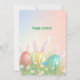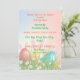 Entrez dans un monde de célébration vibrante avec notre invitation à la chasse aux oeufs et au brunch de Pâques ! Ce design enchanteur est orné d'un éclat de couleur avec des oeufs de Pâques finement conçus, nichés dans l'herbe de printemps, ornés de délicates marguerites blanches. Jetez un oeil derrière les oeufs, et vous trouverez de mignonnes petites oreilles de lapin ajoutant une touche de charme supplémentaire. Personnalisez ce chef-d'oeuvre artistique pour en faire le vôtre ! Ajoutez tous les détails pour votre réunion de Pâques, de la date et de l'heure à l'endroit et toute note spéciale. Les couleurs vives et les oreilles de lapin ludiques rendent cette invitation parfaite pour créer une ambiance festive. Les oeufs colorés de Pâques symbolisent la joie de la saison, tandis que les petites marguerites blanches et les oreilles de lapin apportent un élément de fantaisie. Que vous soyez l'hôte d'un brunch, d'une chasse aux oeufs ou des deux, cette invitation vous ouvre la voie à une occasion inoubliable.