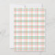 Notre Invitation des Fleurs de Printemps de Pâques présente une illustration de bordure en aquarelle de fleurs printanières colorées, y compris des haricots de saule Pussy, des fleurs roses de cerisier, des pivoines roses, des roses blanches et des marguerites jaunes. Le texte indique "Déjeuner de Pâques" et peut être mis à jour pour faire une invitation personnalisée pour toute fête ou événement de Pâques ou de Printemps! Le dos de la carte est assorti d'un motif plaid rose, vert et jaune. Tout le texte peut être mis à jour pour créer une invitation unique pour votre événement de printemps spécial.