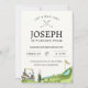 Invitation vos invités à un "par tee" amusant avec cette invitation d'anniversaire au golf charmant et élégant. Parfait pour le quatrième anniversaire d'un petit garçon, ce design présente un aménagement propre avec le titre ludique "Let's Par-Tee!" et les clubs de golf croisés. Le fond de l'invitation est orné d'une belle aquarelle illustrant un parcours de golf, avec une voiturette de golf, un sac de clubs et un putting green. La typographie classique et la palette de couleurs douces en font un choix sophistiqué mais amusant pour votre célébration. Tous les détails, y compris le nom, l'âge, la date, l'heure, l'adresse et les informations RSVP, sont facilement personnalisables pour convenir parfaitement à votre événement.
