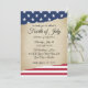 Cette invitation de fête personnalisée présente un thème patriotique pour la fête du 4 juillet. Le fond est un design de papier parchemin délavé d'aspect rustique avec une police de caractères élégante qui ressemble au document de la Déclaration d'indépendance. La partie supérieure comporte une bordure d'étoiles blanches sur une bannière bleu marine, avec des bandes rouges et blanches placées le long de la partie inférieure pour représenter le drapeau américain. C'est parfait pour une célébration intime du 4 juillet ou une grande fête.